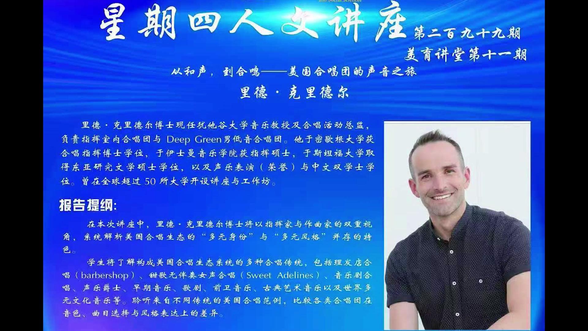 星期四人文讲座第二百九十九期——从和声,到合鸣:美国合唱团的声音之旅