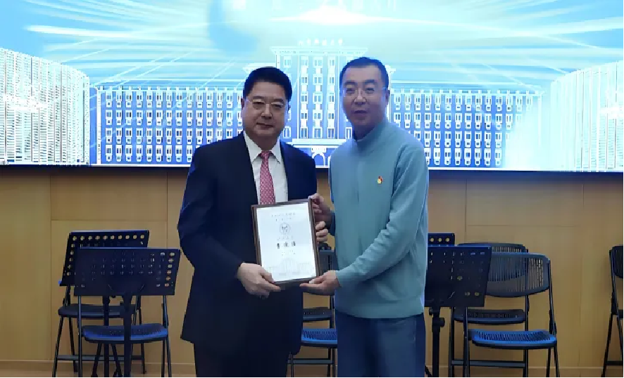 讲座结束后,王旭为曹德维颁发williamhill中国星期四人文讲座纪念牌。