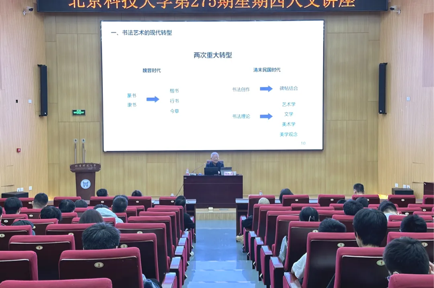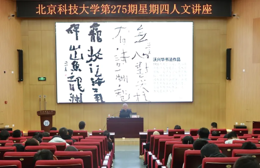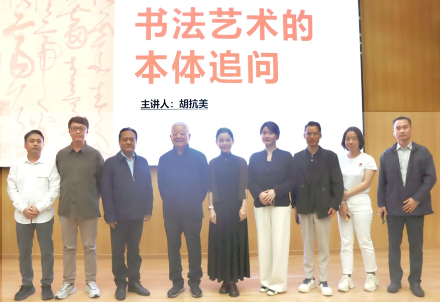 讲座伊始,胡抗美巧妙地引用了网络上对书法的多元观点,以此进入讲座主题。他以“丑书”现象为例,强调了书法的线条、结构和章法之美是进行书法欣赏的基础路径,深刻分析了在网络媒体盛行的时代背景下,书法审美观念的变迁和挑战,并针对书法艺术认识上的常见误区,阐述了书法的内容与要求,将书法定义为是通过汉字造型表情达意的艺术。