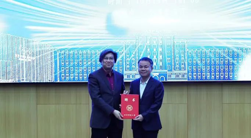 我校人事处处长尹升华代表学校聘请梁玖教授为williamhill中国兼职教授,并颁发聘书。