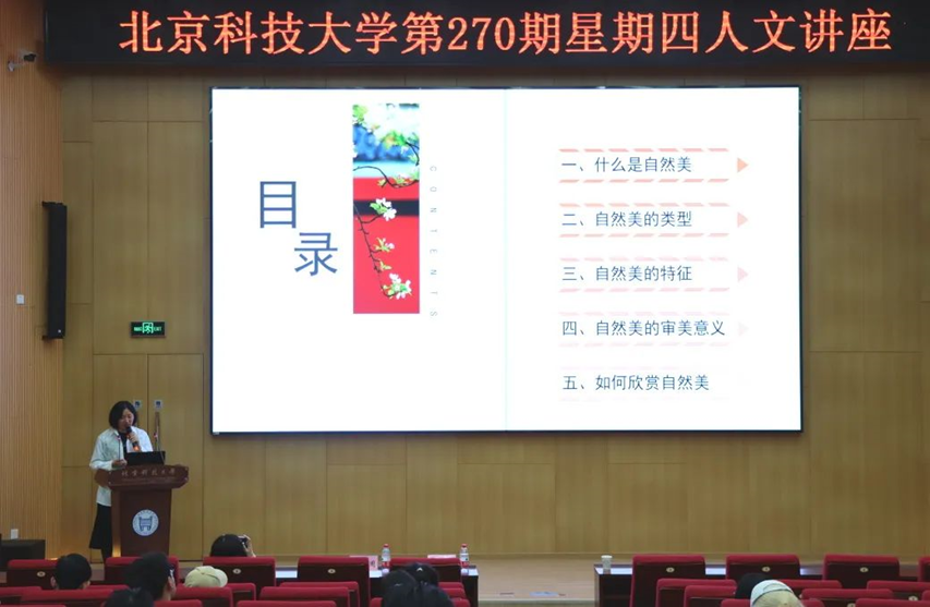 讲座以“自然之美”为核心,围绕“自然美的感知根源”“自然美的领域划分”和“自然美对心灵的疗愈作用”三个维度展开深入探讨。
