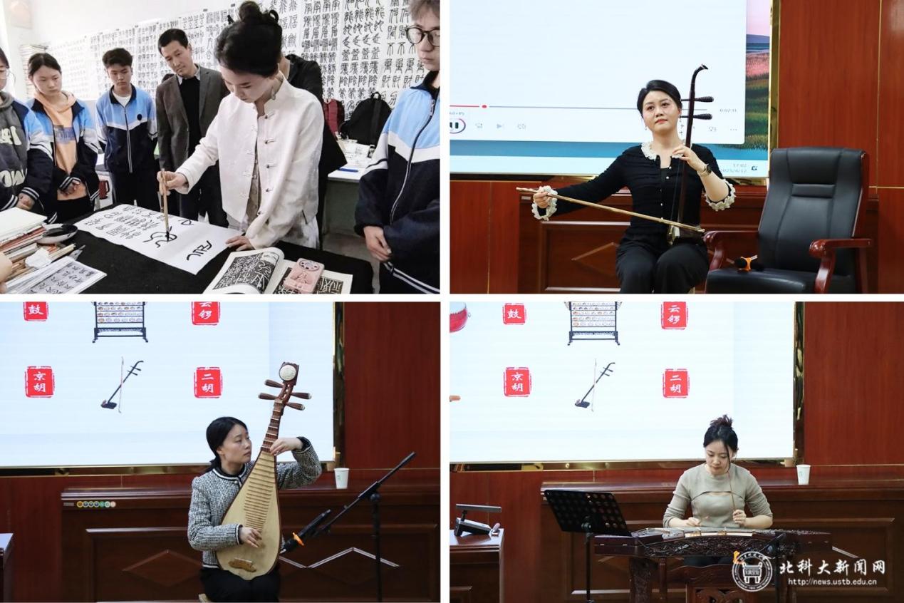 活动中,团队成员通过二胡、琵琶、古筝等乐器的现场展示与互动教学,让学生们近距离感受中国传统乐器的独特魅力,激发了学生们对中国民族音乐的兴趣。