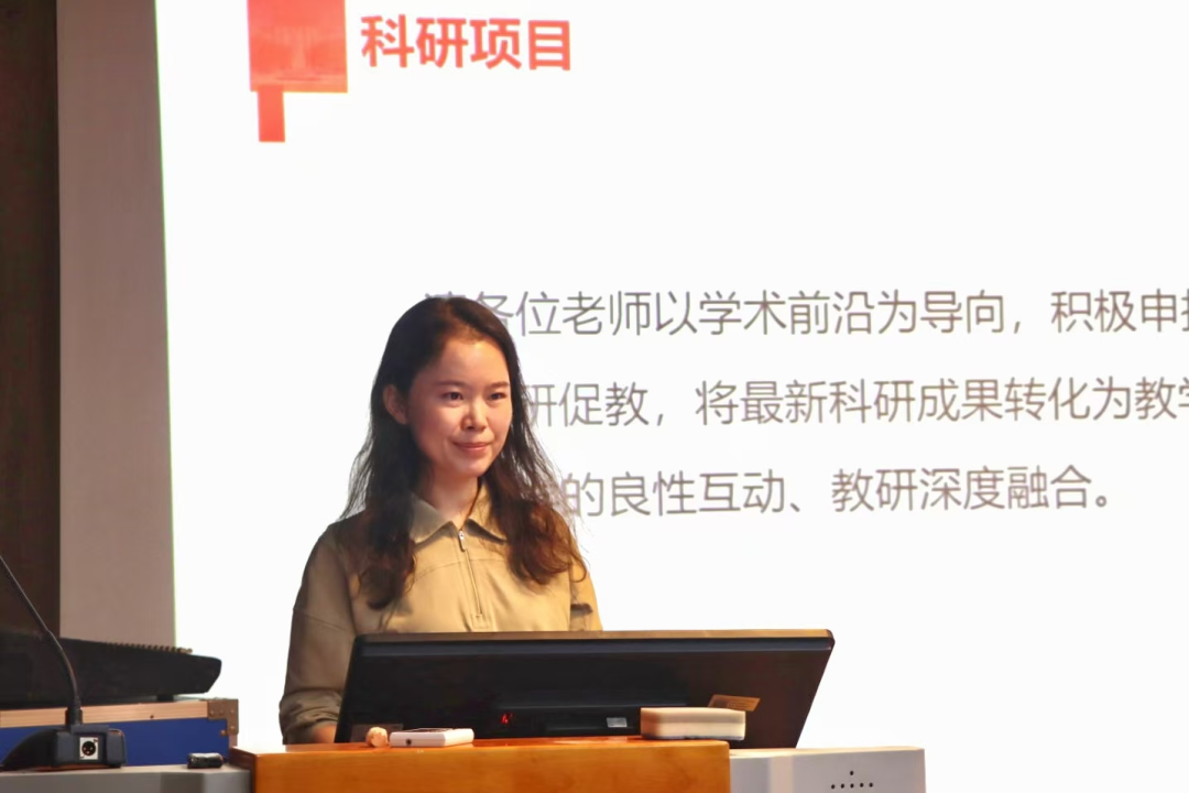 朱玉洁简述了中心教师近期在论文发表、著作出版、科研项目立项及获奖等方面的成果。鼓励大家紧扣学校 “精品文科” 布局,主动谋划高水平科研课题,实现 “科研反哺教学、教学推动科研” 的良性循环。