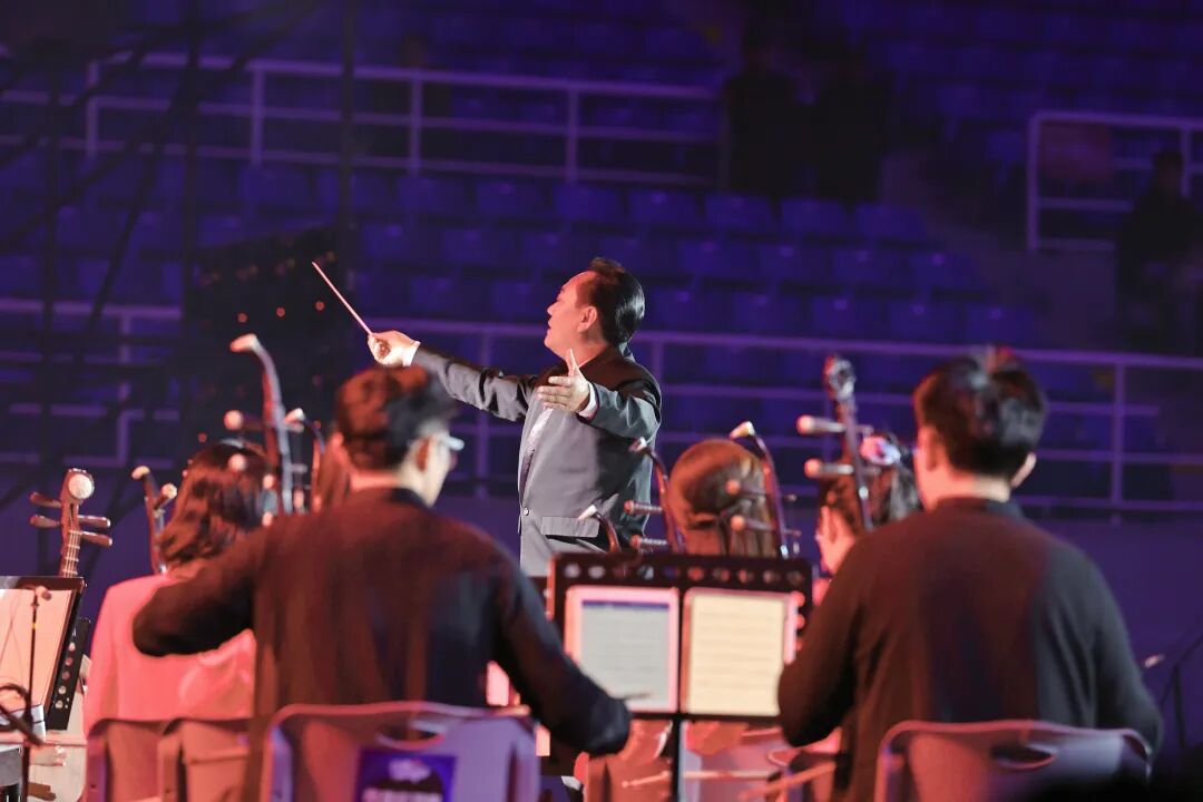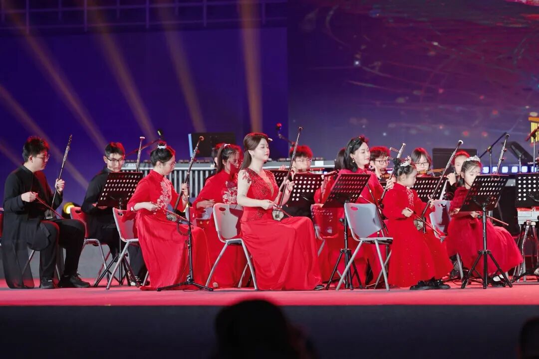 民乐合奏曲目《秦腔序曲》为音乐会拉开序幕。该曲目是北京市教学名师、指挥家、作曲家韩学周教授专为国家艺术基金《西北秦腔表演艺术人才培训》项目而创作,由我校人文乐团、民乐团、科大附小民乐团与东方演艺集团共同演绎。作品巧妙融合了传统秦腔韵味与现代音乐表现手法,以激昂的旋律与丰富的层次变化,生动呈现了秦腔艺术的当代表达与时代生命力,体现出传统与现代交融、传承与创新并举的艺术追求。