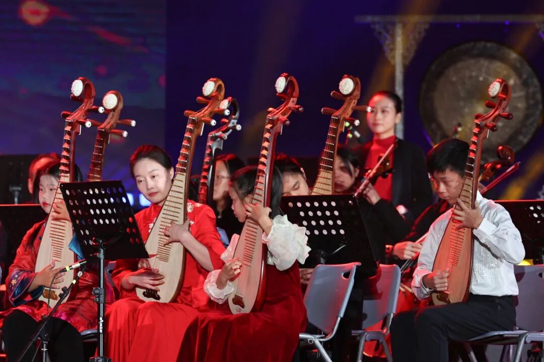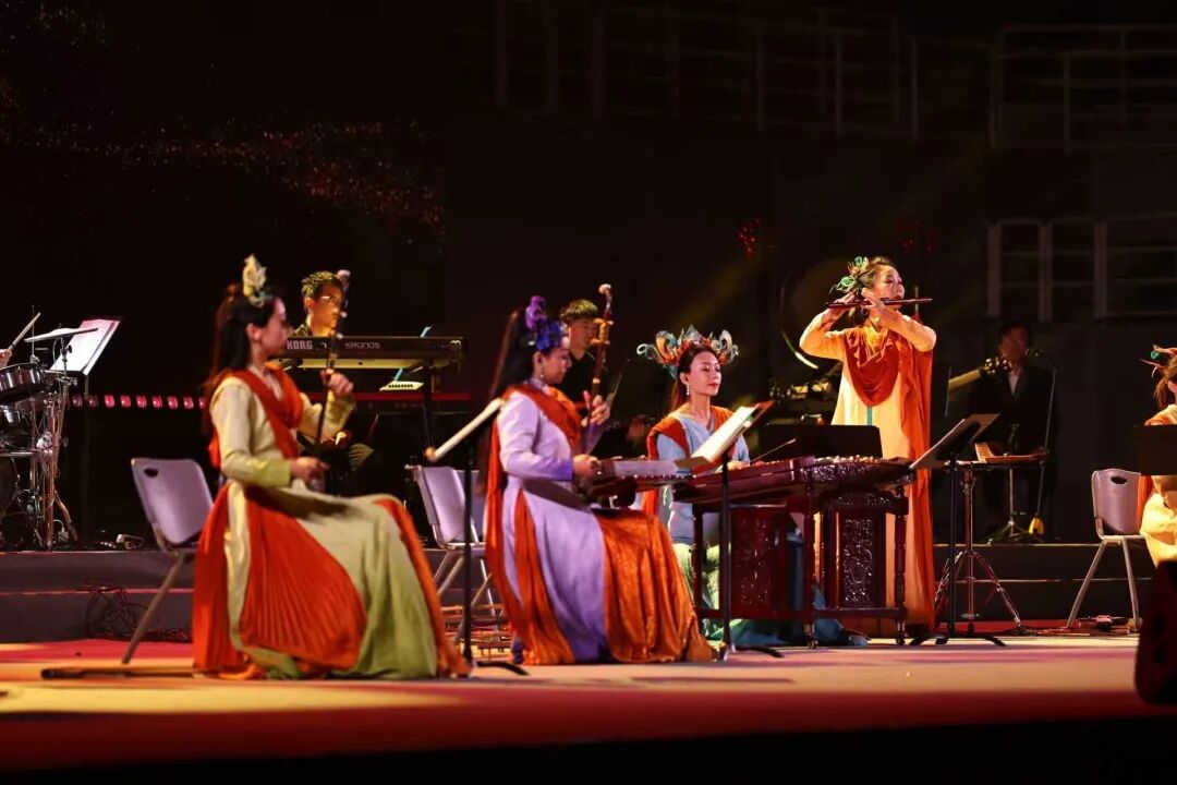 《千年回响》《戈壁之梦》《阳关三叠》《碧海欢歌》《龟兹乐舞》《丝路同欣》等曲目再现沙漠驼铃、敦煌壁画、千年商道的经典场景,以民乐为经纬,织出“一带一路”的音乐史诗,为千年丝路文明与当代青年之间架起了一座沟通的桥梁,给师生带来一场精彩的视听盛宴。