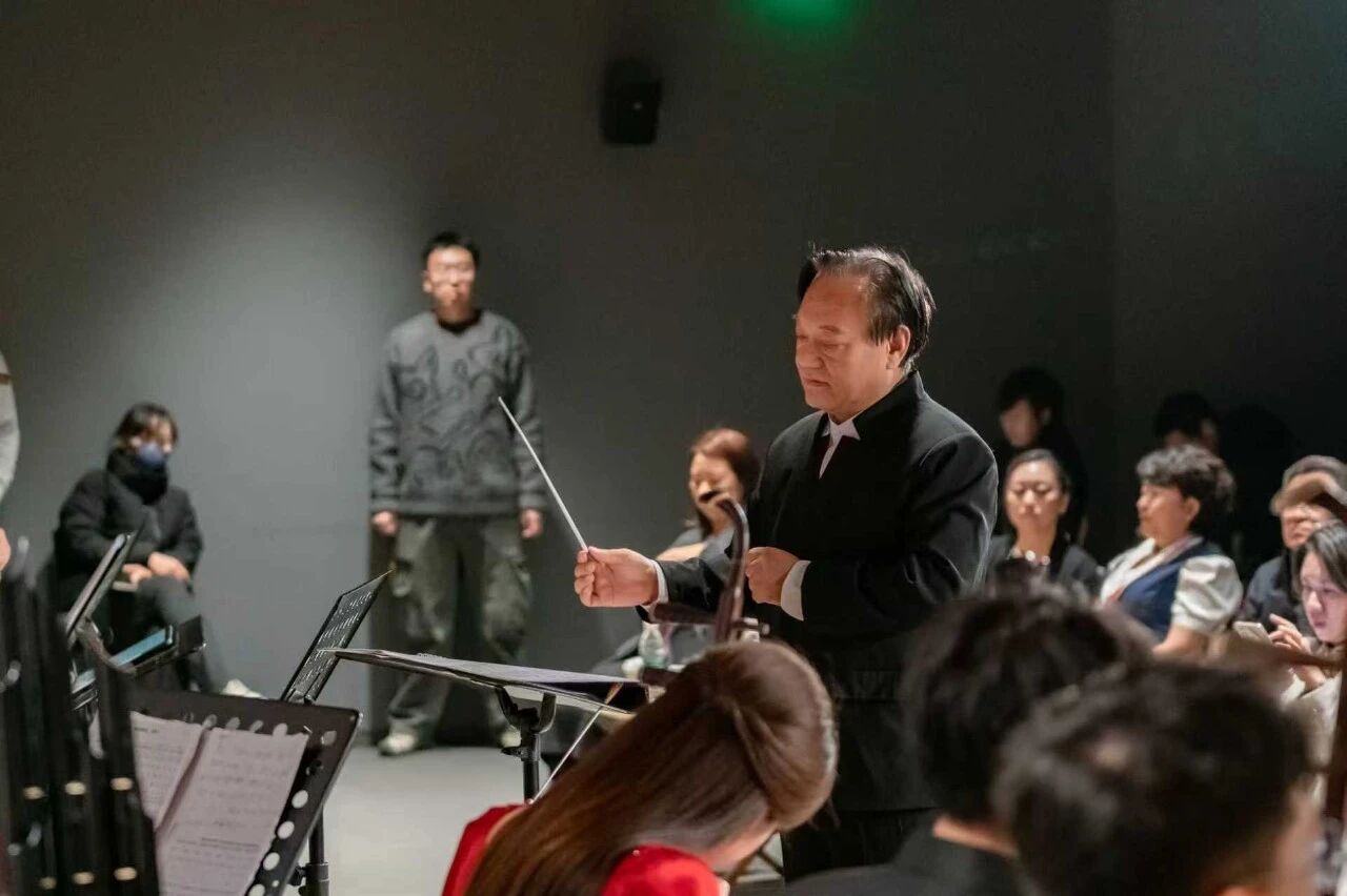 在韩学周教授的指挥下,民乐合奏《秦腔序曲》将整场音乐会推向高潮。该作品由北京市教学名师韩学周教授专门为国家艺术基金《西北秦腔表演艺术人才培训》项目创作,巧妙融合传统秦腔韵味与现代音乐表现手法,以激昂的旋律与丰富的层次变化生动呈现秦腔艺术的当代表达与时代生命力,体现出传统与现代交融、传承与创新并举的艺术追求。